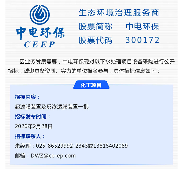 中電環(huán)保股份有限公司是南京市首家環(huán)保上市公司(股票簡稱:中電環(huán)保,股票代碼:300172),南京環(huán)保產業(yè)協(xié)會會長單位,國家級聯盟理事長單位,是生態(tài)環(huán)境治理服務商,主營(3+1):水務、固危廢、煙氣治理及產業(yè)創(chuàng)新平臺,包括:工業(yè)水處理、污水處理及水環(huán)境綜合治理;固危廢土壤、污泥餐廚垃圾處理;煙氣及VOCS治理;智慧環(huán)保;高端裝備等。