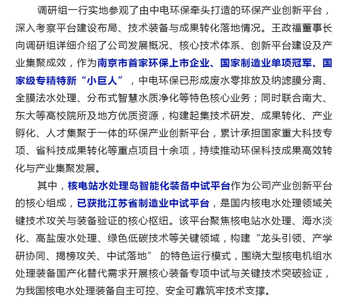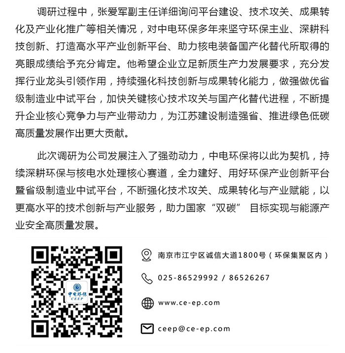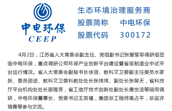 中電環(huán)保股份有限公司是南京市首家環(huán)保上市公司(股票簡稱:中電環(huán)保,股票代碼:300172),南京環(huán)保產業(yè)協(xié)會會長單位,國家級聯盟理事長單位,是生態(tài)環(huán)境治理服務商,主營(3+1):水務、固危廢、煙氣治理及產業(yè)創(chuàng)新平臺,包括:工業(yè)水處理、污水處理及水環(huán)境綜合治理;固危廢土壤、污泥餐廚垃圾處理;煙氣及VOCS治理;智慧環(huán)保;高端裝備等。