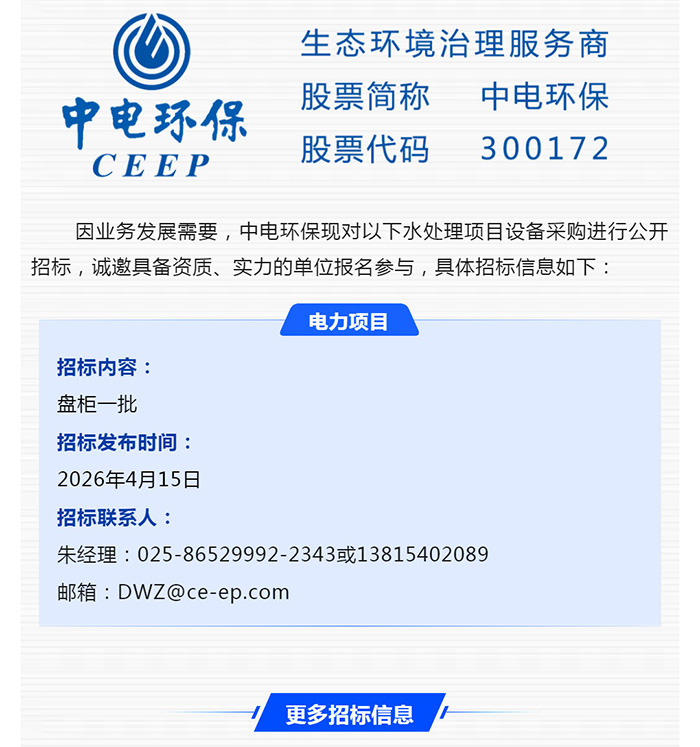 中電環(huán)保股份有限公司是南京市首家環(huán)保上市公司(股票簡稱:中電環(huán)保,股票代碼:300172),南京環(huán)保產(chǎn)業(yè)協(xié)會會長單位,國家級聯(lián)盟理事長單位,是生態(tài)環(huán)境治理服務(wù)商,主營(3+1):水務(wù)、固危廢、煙氣治理及產(chǎn)業(yè)創(chuàng)新平臺,包括:工業(yè)水處理、污水處理及水環(huán)境綜合治理;固危廢土壤、污泥餐廚垃圾處理;煙氣及VOCS治理;智慧環(huán)保;高端裝備等。