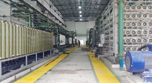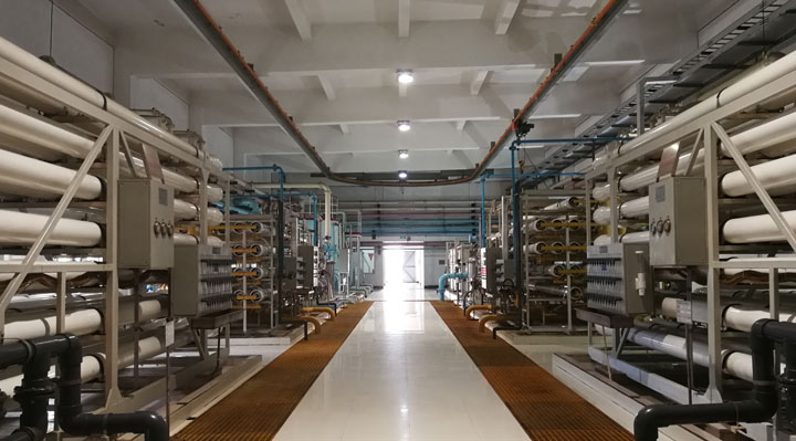 經(jīng)過預處理(混凝、沉淀、過濾)的原水,在壓力驅(qū)動下,利用微濾、超濾去除懸浮物、 膠體、病毒等雜質(zhì),利用反滲透預脫鹽,利用電除鹽或離子交換深度除鹽,達到各行業(yè)所需高品質(zhì)除鹽水的水質(zhì)要求。采用自主專利技術,工藝可靠, 產(chǎn)水水質(zhì)好,自動化程度高,運行維護簡便等。
